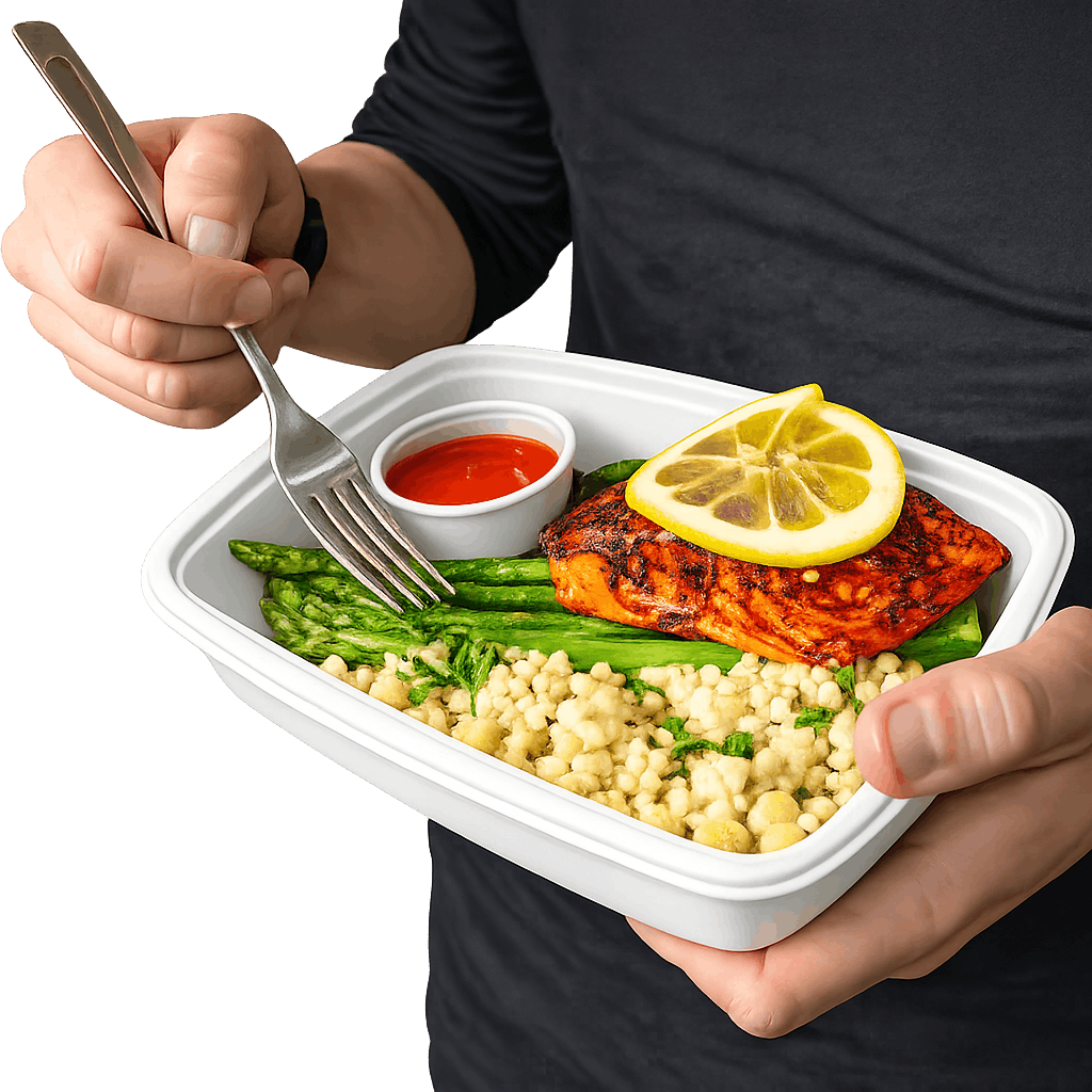 Fresh vacuum-sealed meals in recyclable, temperature-safe packaging — delivered free, right to your door.