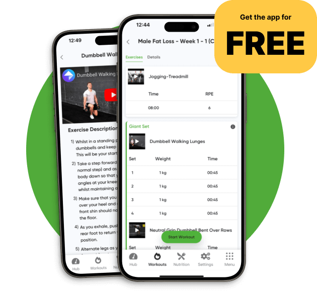 Free with your plan: a data-driven fitness app for training, cardio, nutrition, and progress — all synced with your meals.