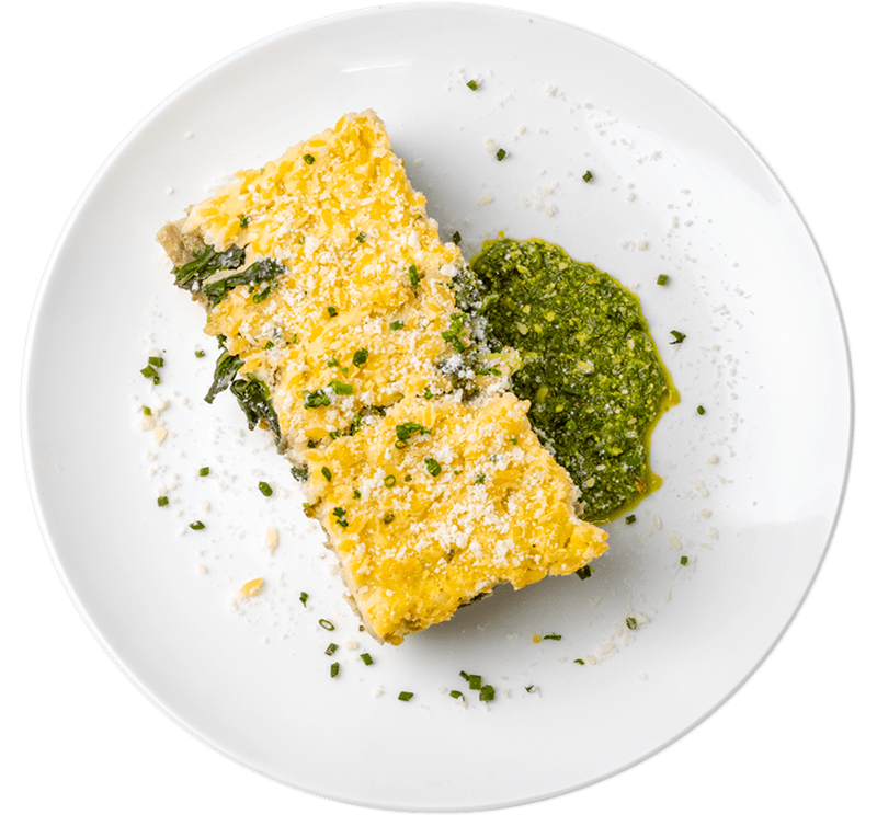 A rich, savory breakfast bake with roasted Yukon potatoes, mozzarella, and pesto-infused scrambled eggs, paired with a spicy Italian sausage skillet and finished with extra pesto on the side for a bright, herbaceous touch.